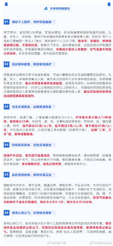 天津最新防病策略解读:天津市实施了一系列全面的防病策略,旨在提高市民的健康水平。这些策略包括加强疾病预防控制体系建设、提高公共卫生服务水平、推广健康生活方式等。通过全面解读这些策略,我们可以看到天津市在防病方面的决心和行动,以及对于市民健康的关注和重视。这些策略的实施将有助于减少疾病的发生,提高市民的健康素养和生活质量。